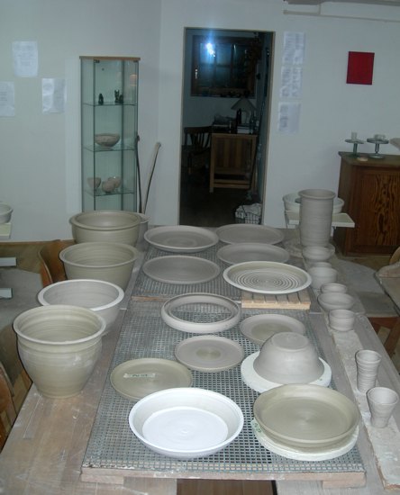 Hier sind ein paar Fotos vom letzten Kurs "Drehen an der Töpferscheibe", bei denen man die Ergebnisse bestaunen kann und unten gibt es ein Video vom Entstehen eines Gefäßes, das ich auf der Scheibe drehe!